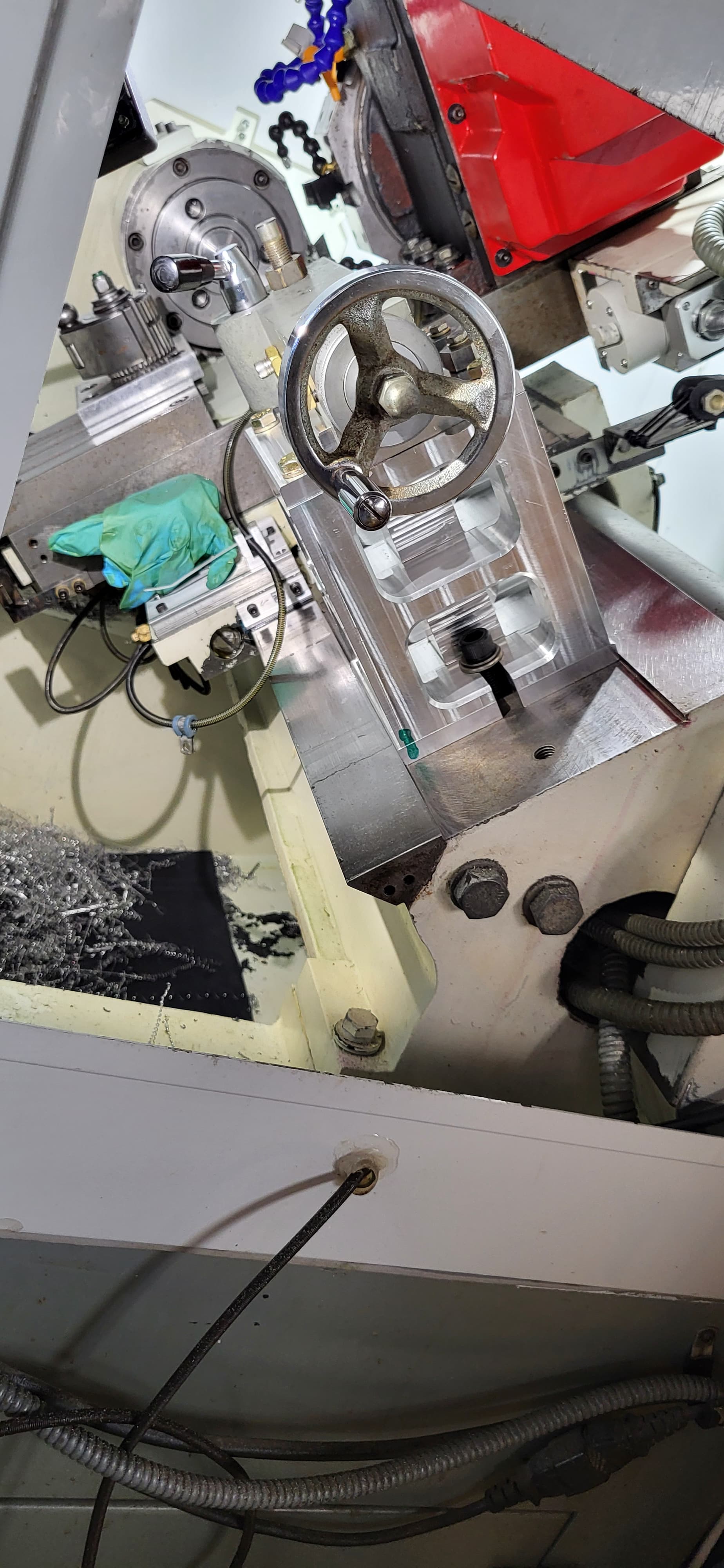 Got tired of the OEM tailstock being so heavy and awkward. So I cut it up. I can lift this one with one hand. Put it in from the front. Gained 4 inches of Z travel. With the QCTP, I can get what the turret can’t in certain situations. Strip some paint, deburr, check for flatness (it has been rough machined). Top plate shimmed to height. Two eccentric bolts adjust centerline. Less moving parts than the original. Just finished it so still learning. G30 will be the parking code as my CAM uses tracking point of last tool used. Could get exciting if I screw up. You will need a mill, and some sort of tailstock quill or other doner. I put a 0.750” x 8” ground, center drilled rod in and top was w/in 2 tenths, front 2-3 tenths. Haven’t moved it and checked for repeatability yet but it should require minimal tweaking. Any one interested in the CAD let me know.
