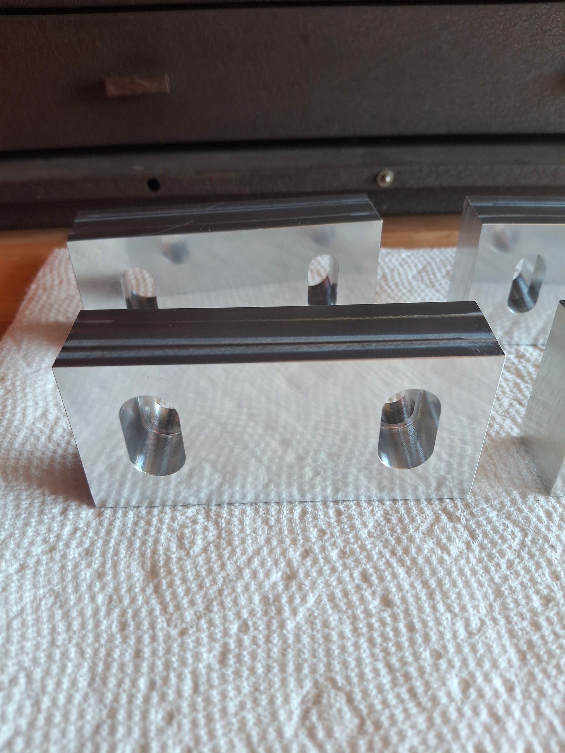 Here is my first project with the 440. I faced with Path Pilot conversational and cut the slots with Fusion CAD CAM. I have two more sets to make.
