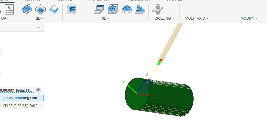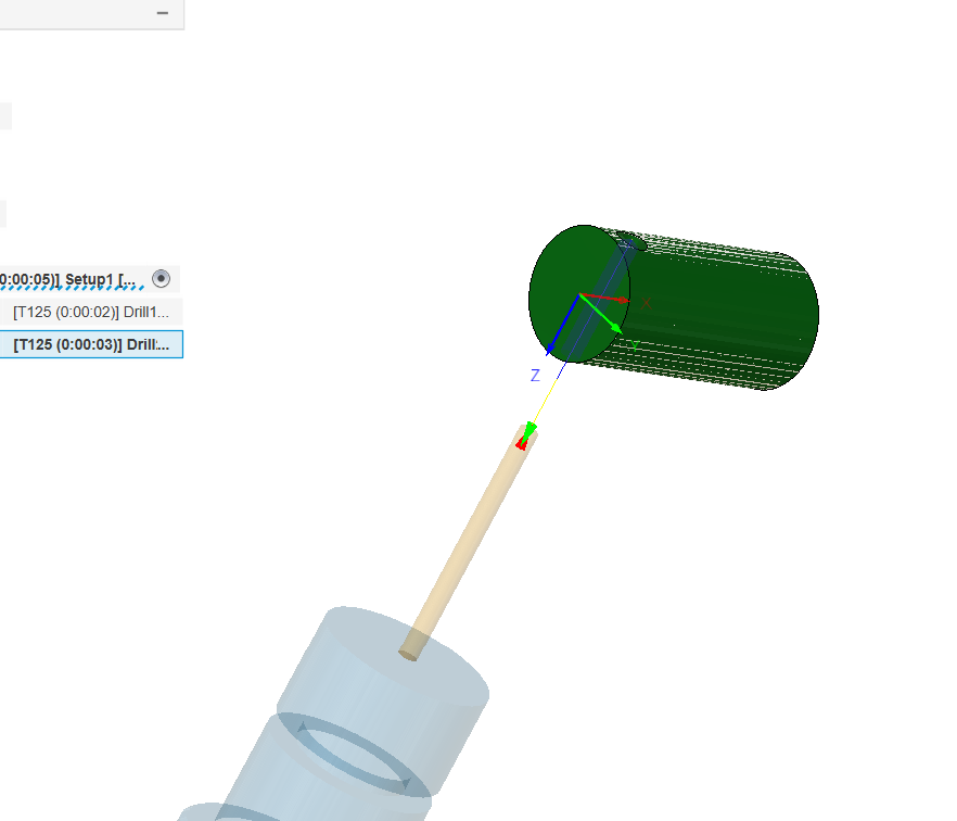 In the design workspace I made a cylinder and put a hole through it (using the cylinder and hole tools, no sketch needed), moved to manufacture and new setup. Set the stock WCS to the centerline at one end, then added two drill ops using a random drill in my library– the first drill op was at the original WCS, selecting the top of the hole, then the second drill op used the tool orientation option to only tick the ‘flip Z’ button. Selected the other end of the hole for the geometry and hit ok with all the other stuff just defaults (no machine selected in the setup). Posted it with Tormach PP Post (#44024 although I don’t think that matters much) and got the A0 moves. Maybe try copying that just in case there’s something in your geometry that is annoying Fusion. Should only take a few minutes.