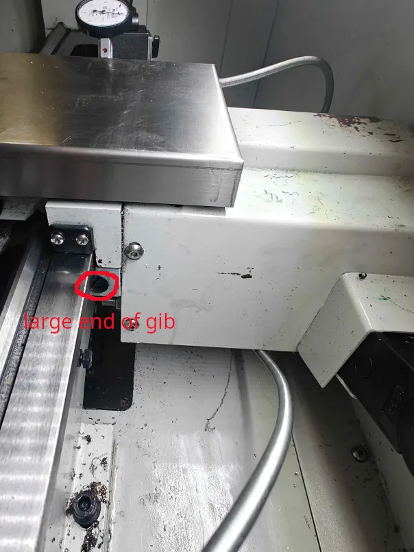- With the indicator in place install the gibs and check the backlash as you tighten the gib. As soon as the backlash increases you know the gib is too tight and needs to be backed off. Back it off in small increments until the backlash just goes back to the previous recorded number.