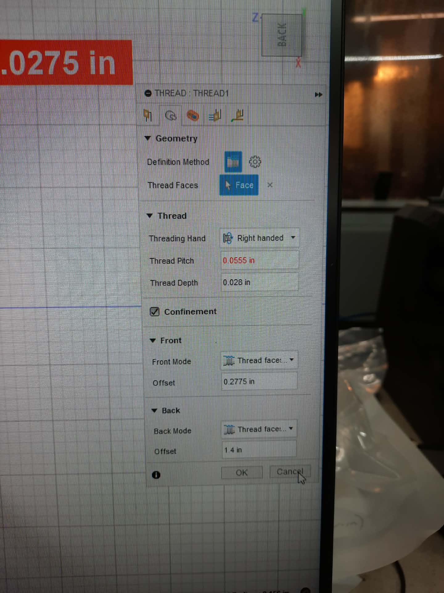 In a related matter, how did you get the nice screenshot of the Fusion Thread tabs? My computer won’t let me do a standard screenshot in Fusion and the Capture an Image from the File dropdown menu erases the tabs to allow a pic of the part. Thanks in advance.