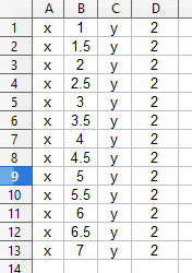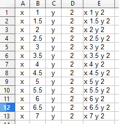 *note that for the X value column I wrote a simple formula to build a 0.5” grid