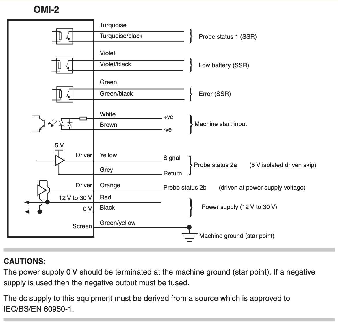 I think I need to confirm what change is taking place in the OMI when the Renishaw probe is tripped aside from just seeing the green LED on the OMI turn red. According to the OMI-2 manual, it would appear that probe status 1 closes or opens the circuit SSR circuit for the turquoise and turquoise/black wires. However, I don’t see any difference when I measure the voltage on those 2 wires with a VOM. I tried looking at it with a small O-scope I have, but couldn’t make any sense of it. Once I can measure that, I can hopefully use that signal to close a separate SSR that will close the circuir between pins 4 & 5 on the Din circuit. Since all I’m doing is closing the circuit, which is what happens when I plug in a passive probe, I won’t have to worry about frying anything. Accordign to Tormach’s own data, the passive probe ONLY uses Pins 4 & 5 on the DIN plug; PINS 1,3,&6 apparently are used an ETS. I’ll try getting some more measurements tomorrow night.