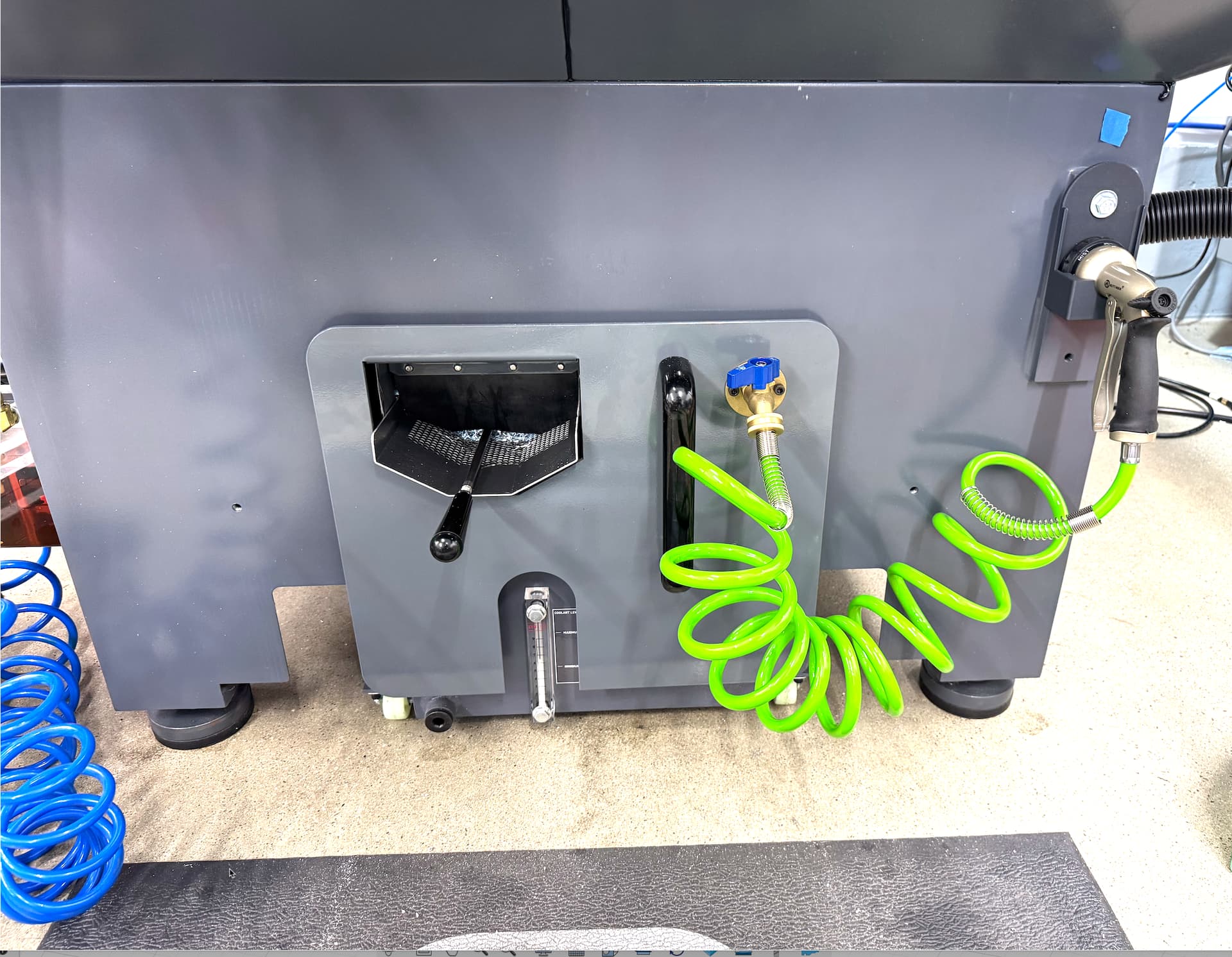 I also added the wash-down pump you see in the picture, along with a hose bib on the front of the Litecycle’s front panel. I 3D printed the holder for the nozzle and a short hose.  Very happy with the pressure of that set up and between the coolant ring which washes most of the chips down and the hose keeping the chip tray clean is much easier.