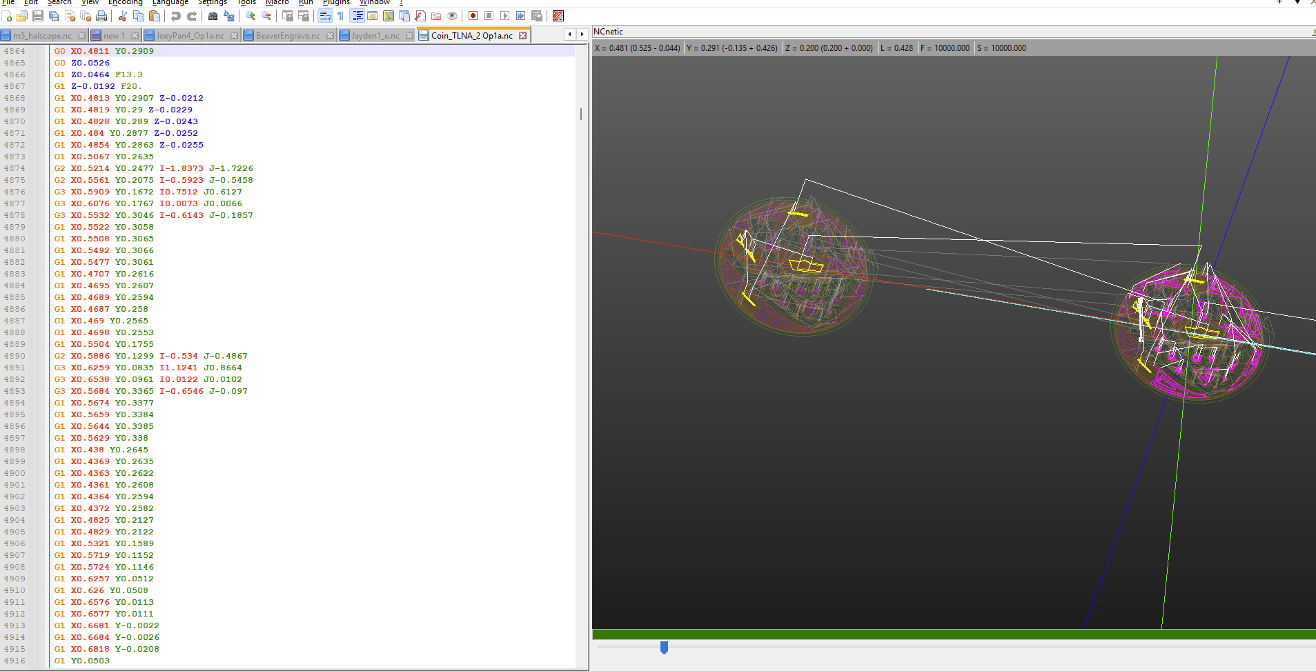 - tool path preview to show you the path in 3D: GitHub - NCalu/NCneticNpp: Gcode CNC backplot/simulation plugin for Notepad++