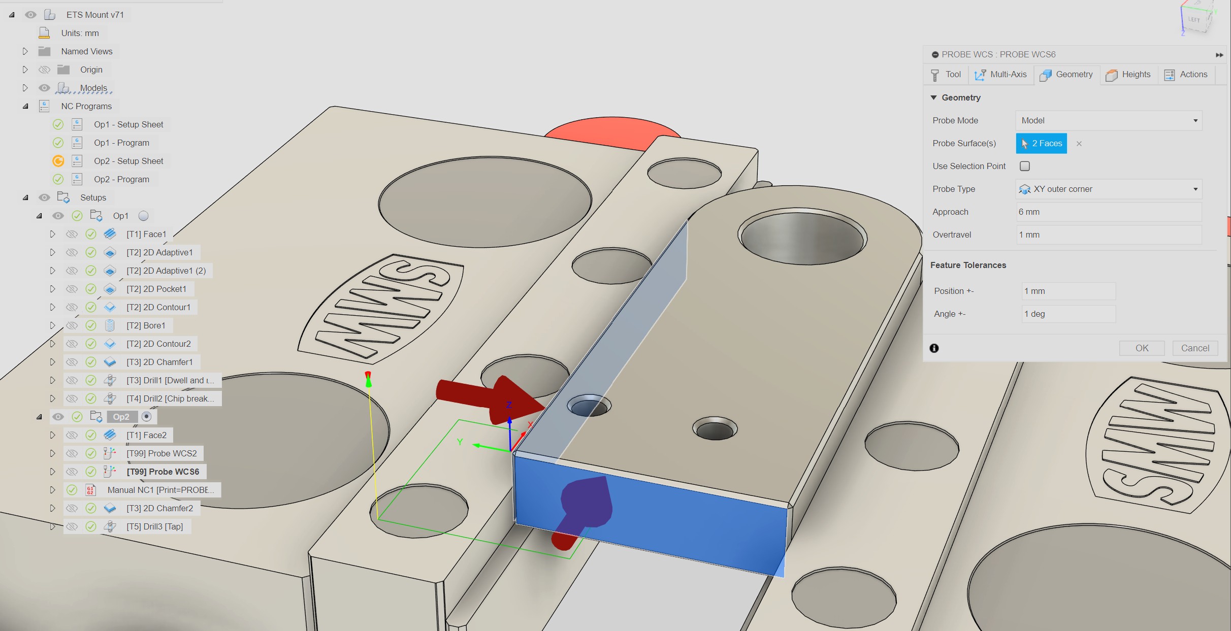 When I use the built in probe routines I get the correct offset for x, y, and z. When using the new fusion probe macros, the z seams correct, but the X and Y will be off by a few millimeters. I believe the macro code and post processor is not calculating the variables correctly. It may not be taking into account my probe ball radius or fusion probe routine variables correctly. Or it may be putting the new origin location based on the stock origin instead of the model. (This is a second op, probing for the model, in fusion the probe mode is set to model)
