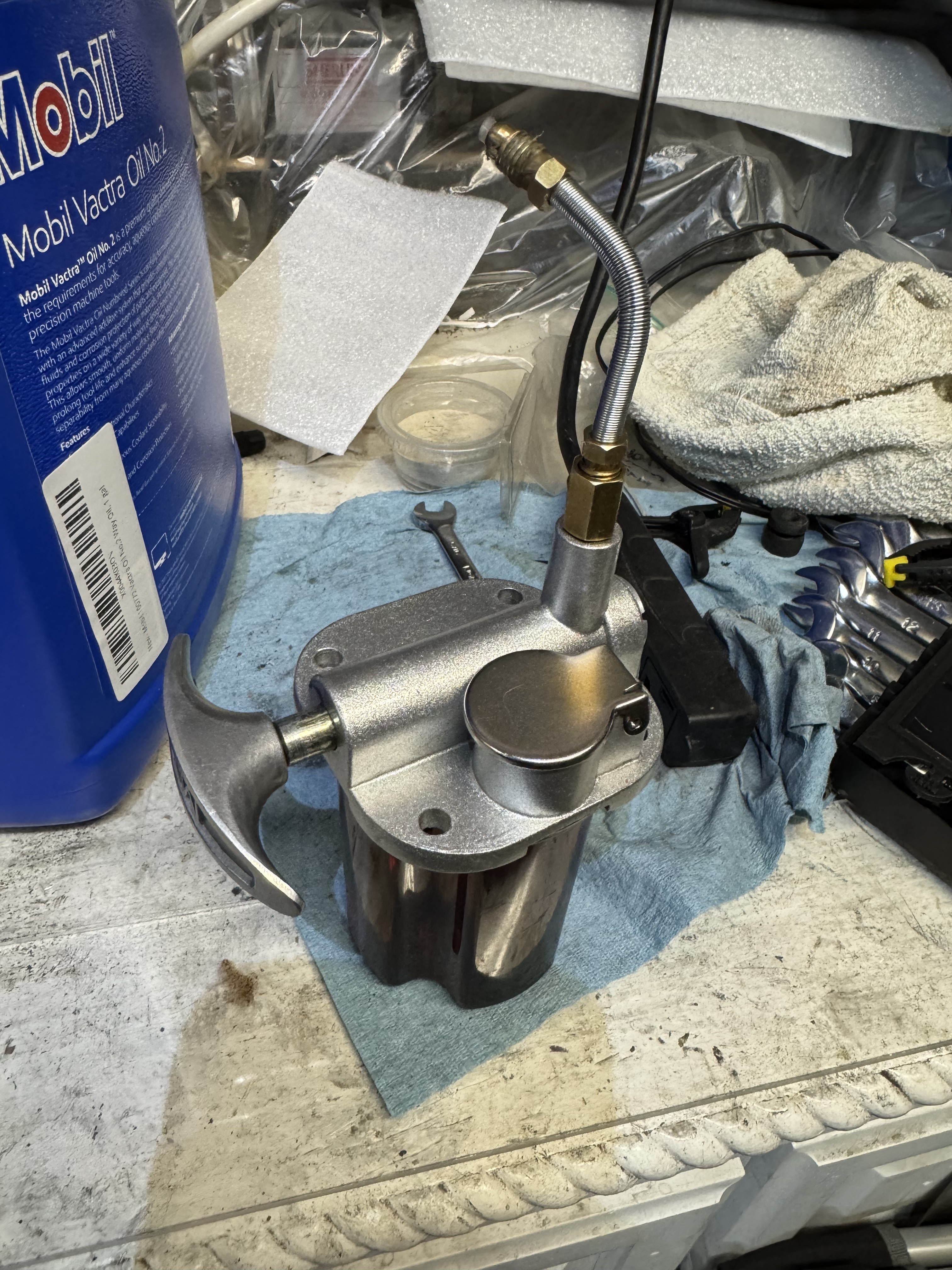 The oiler is a hydraulic system but it has a lot of air in it. One bad seal in the piston can keep it from priming. My moneys on the pull handle shaft seal. Which would also let whatever breached that seal get into the cylinder, probably damaging that one also.