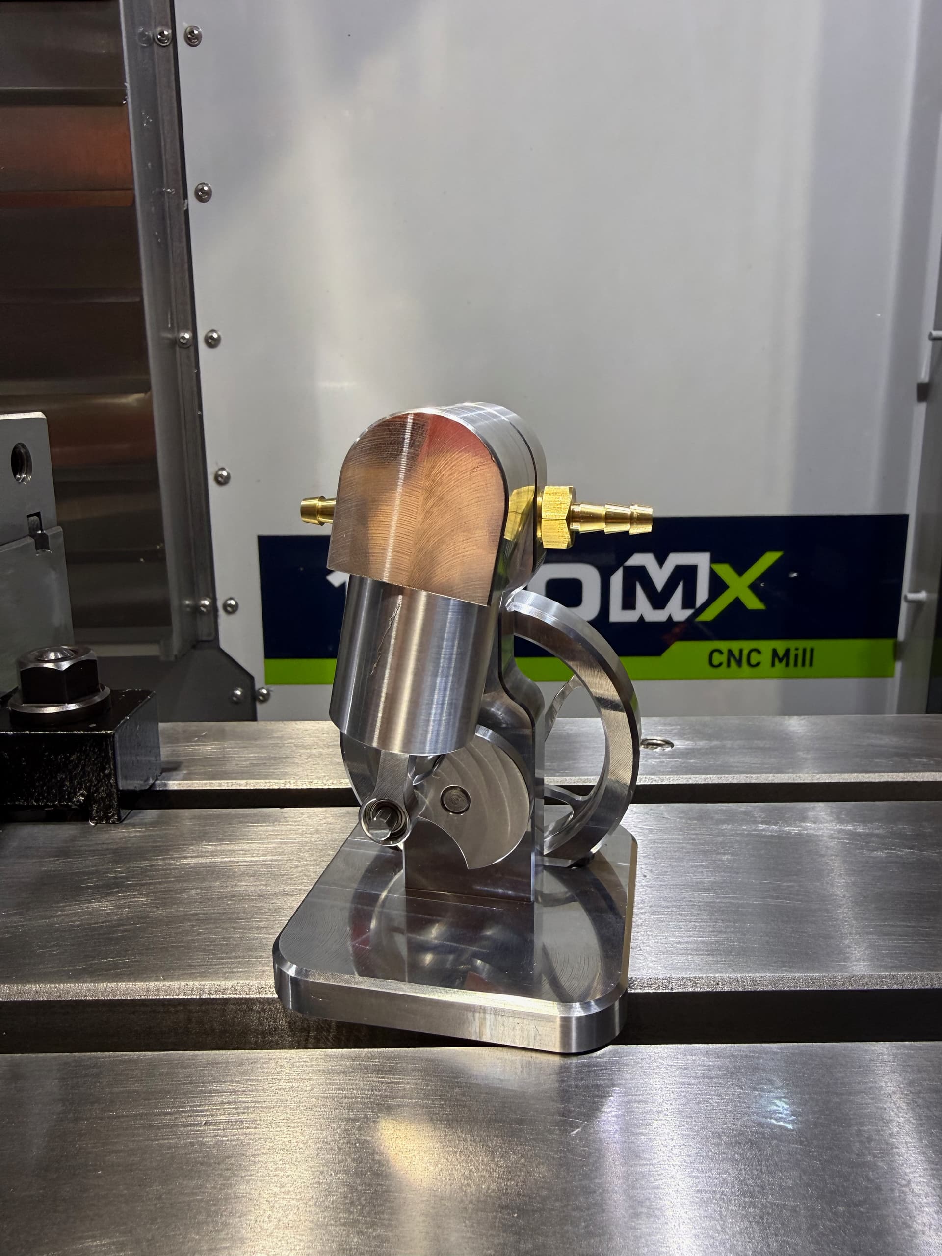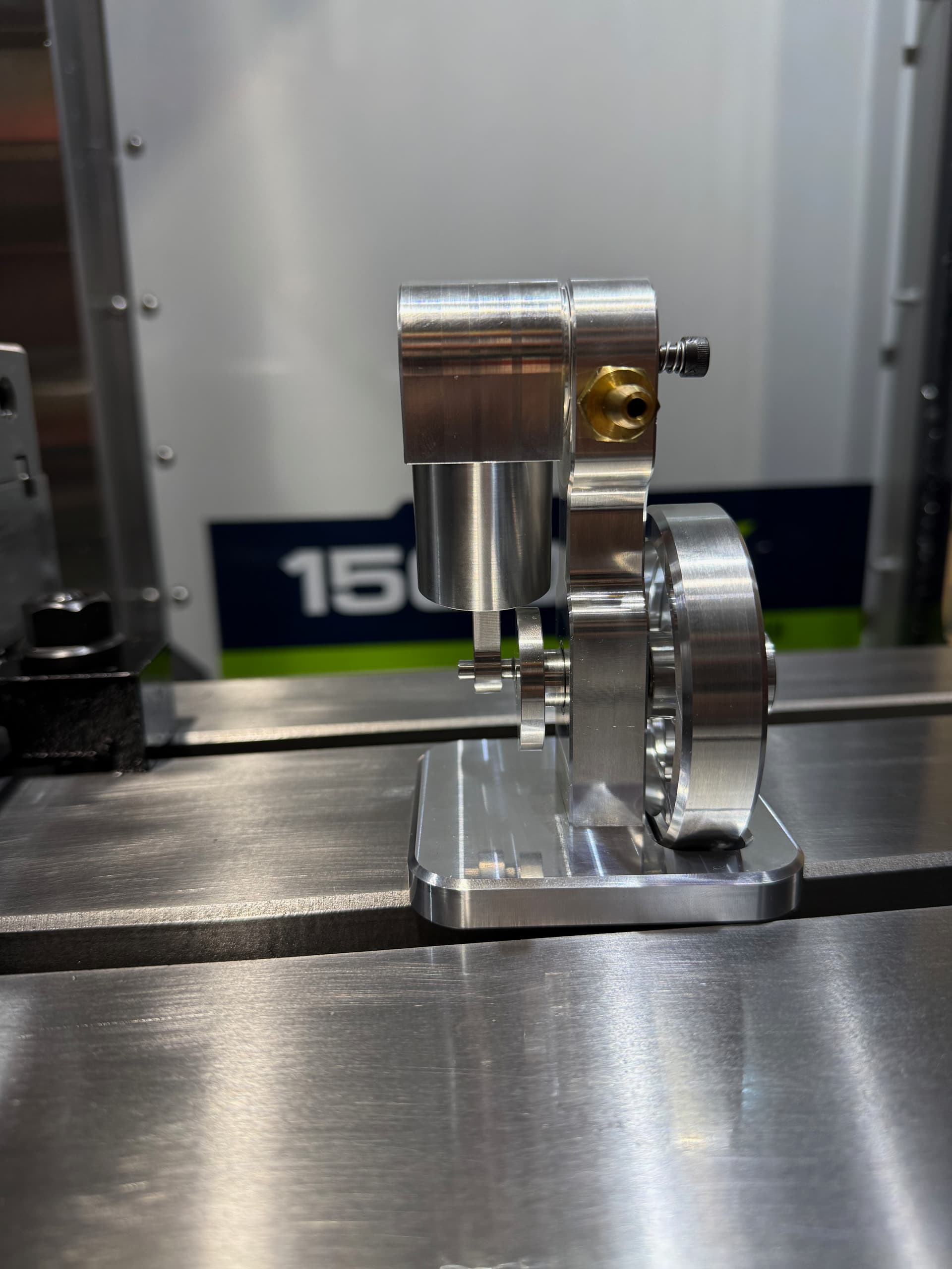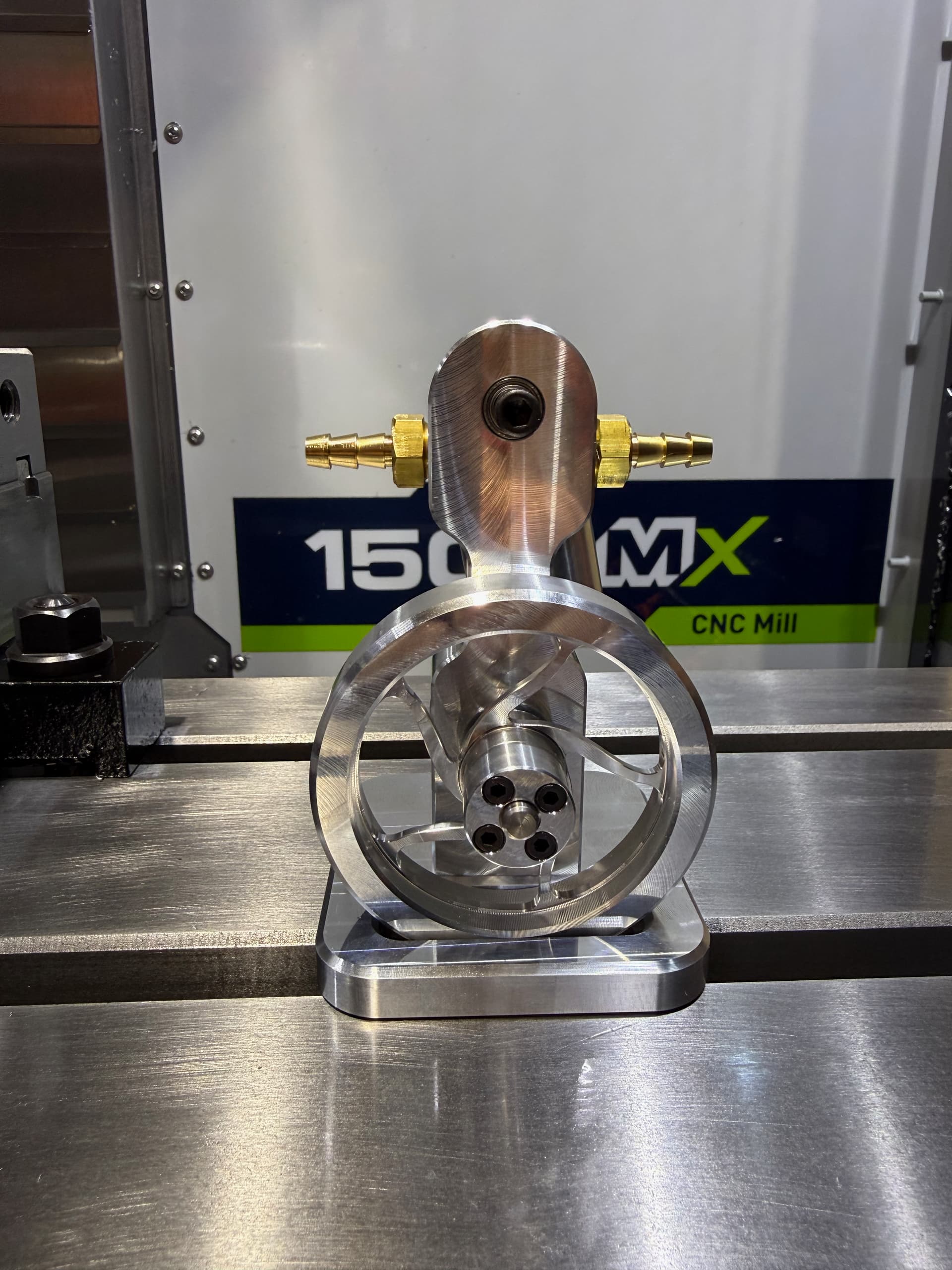 I’ve been making odds and ends for Christmas gifts for years but thought this year I would see if I could scale things out a bit. With the recent addition of a 1500 MX mill to the shop it seemed like some automation could bring the quality up and labor down. I had an old design for a basic steam engine that was made on a manual mill and lathe years ago that I intended to model and CAM for the 1500 MX. It became obvious early on that not only was the design primitive but didn’t lend itself to CNC. I used the same principles from the early engine but started with a clean slate leading to what is pictured here. Starting over was definitely the right approach for this project.