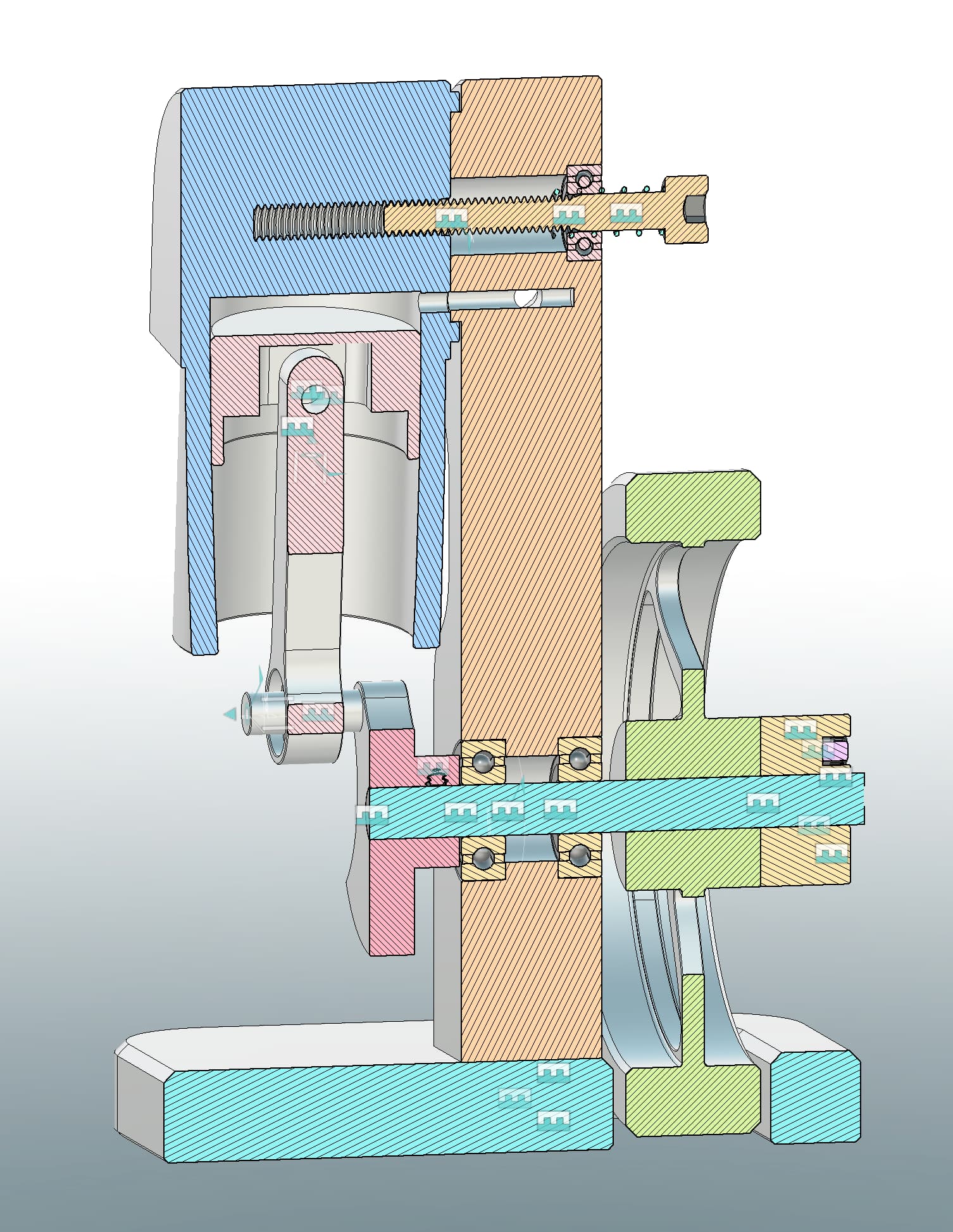Any of these little “steam” engine models are usually run on compressed air. For this engine at least compressed air can be connected to either port. The direction of rotation will depend on which is used as input and which is used as exhaust. The simplicity of this engine design is that it only has pressure applied to one side of the piston. Usually steam engine pistons are powered in both directions. Because of the single sided behavior in this engine the flywheel must hold enough energy to complete an exhaust stroke and return the valve back to allow compressed air into the cylinder. I’ll see if I can get time to add a couple of cutaway views of the engine so you can get an idea just how simplistic this is.
