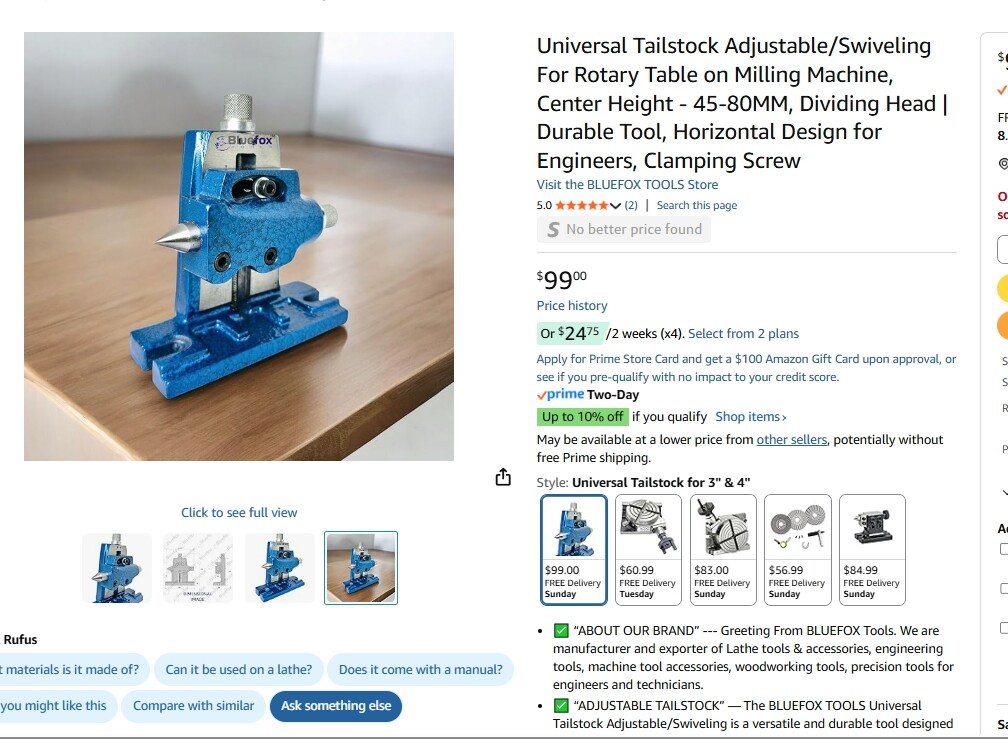Also, has anyone used these China & Taiwanese (Amazon) tool stocks to aid in additional support for 4th axis work? Need to support my next part (an airsoft carry handle upper receiver) on the Micro Arc. I feel like this import, Amazon tail stock, would work just fine. Im also considering a custom-made one as shown in my screenshot, but trying to avoid it if possible, would rather just buy one. ?