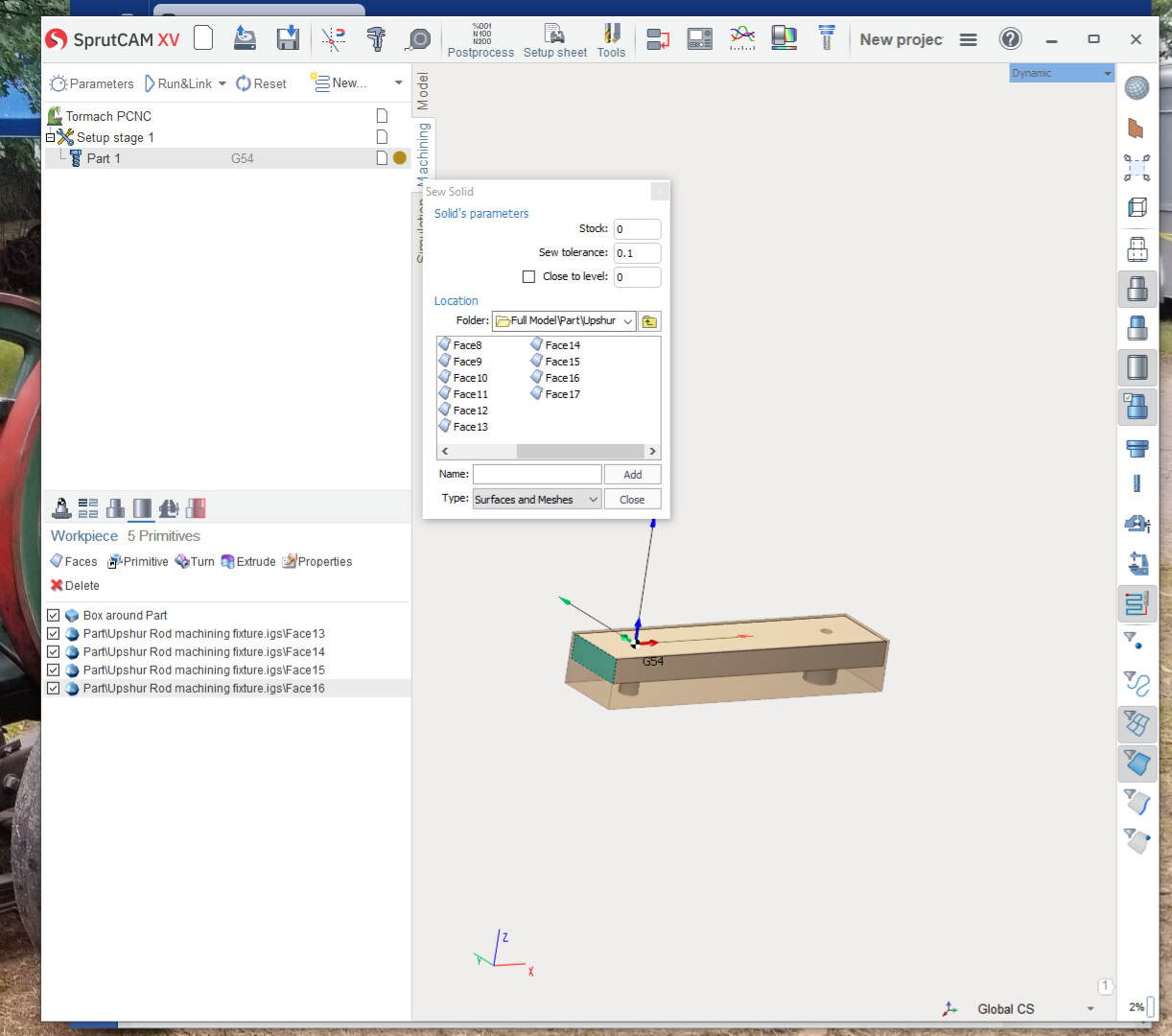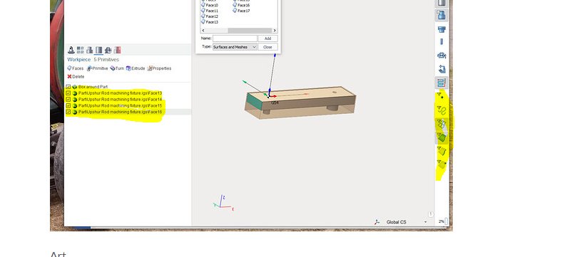 To the best of my knowledge I got the part flipping figured out, but now have an unexpected obstacle. When I get the setup stage, set up and move on to part, and then on to a machining process, I cant choose a face unless I click on faces under job assignment. Then from the list, choose the faces I need and click add. If I left click and look at select objects mode it is on. Did something inadvertently get turned off? Something that should be off turned on. I’ve tried google, no help. I’ve tried sewing it not sewing started over deleting previous versions. I even tried reinstalling sprutcam no use. If I try to click on a face it highlights the whole part. But in the model tab it works as it should. I expect it’s something stupid! I can choose faces from the list but, chamfering I cant choose a sharp edge for the chamfer to cut. Anyone have some helpful thoughts?