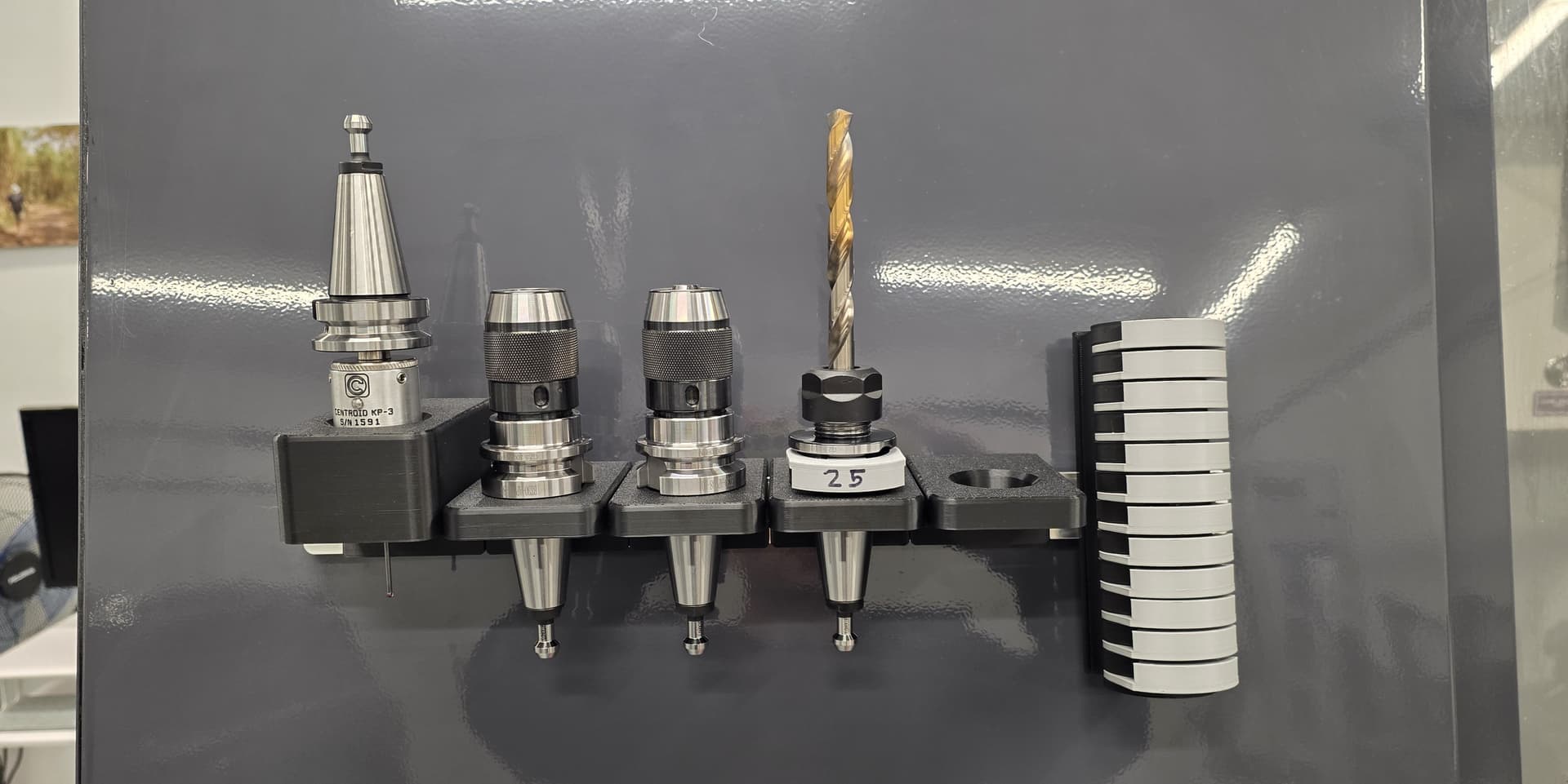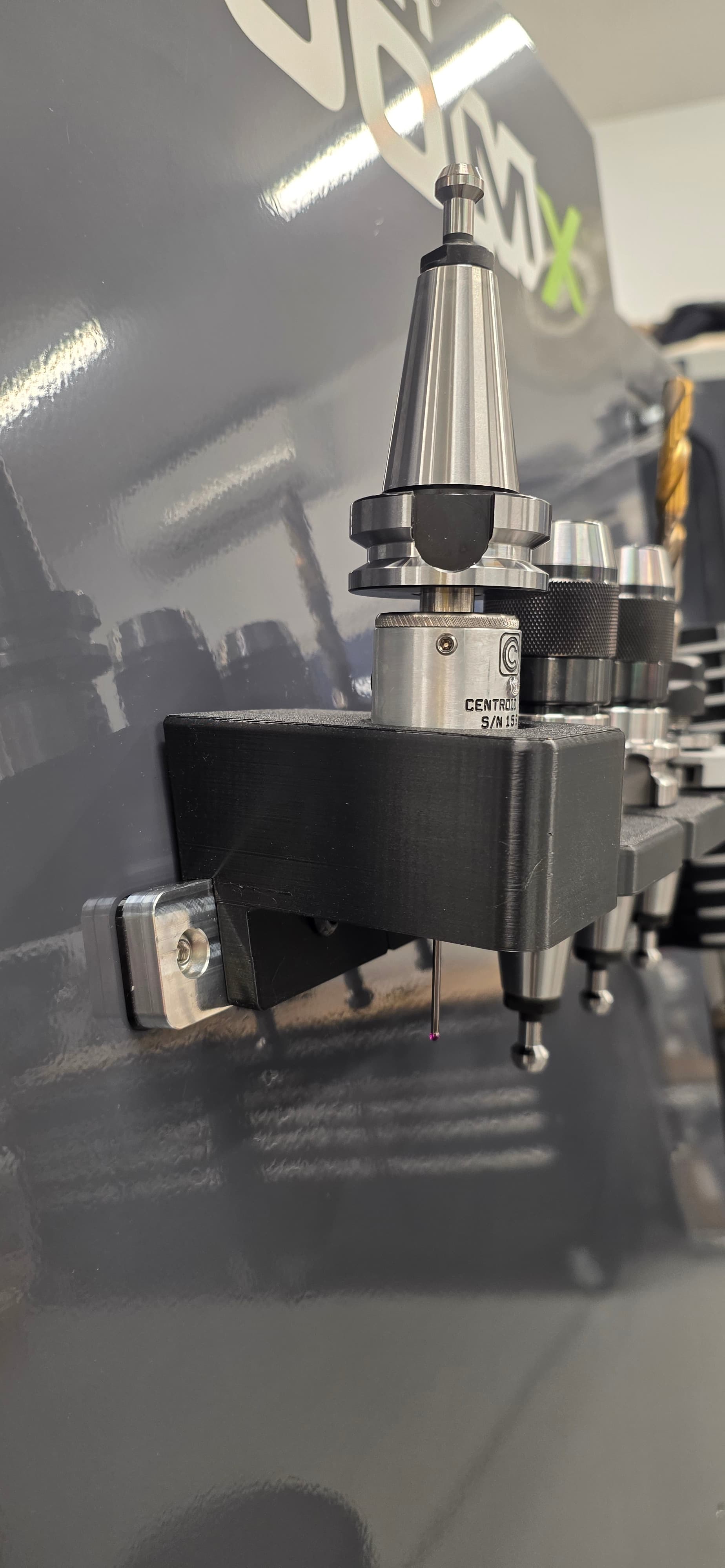 Still in the works is a tool holding system that screws into the front of the machine: