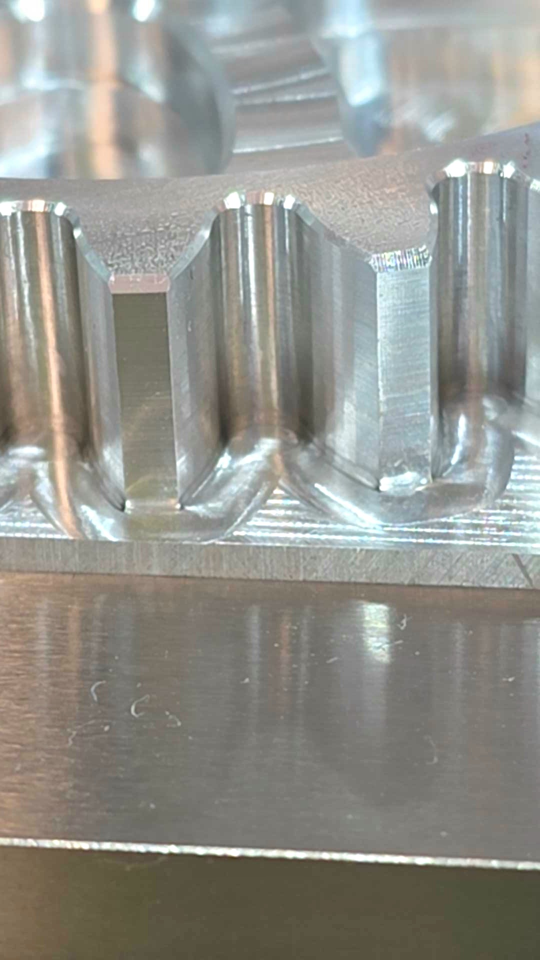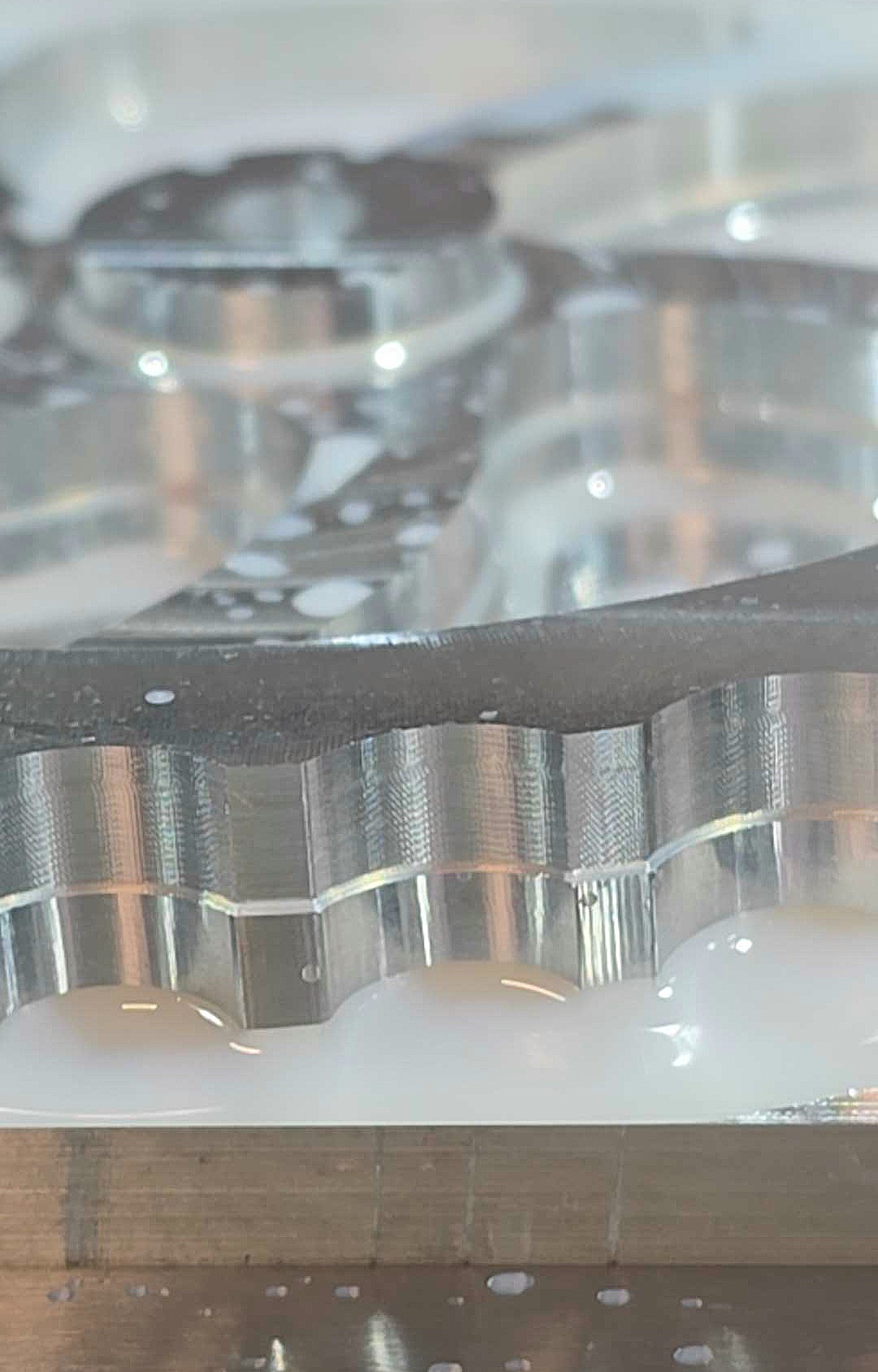The 1/4” end mill worked fantastic. I ran 10,000 rpm, 130 ipm, .4 DOC and .033 optimal load. Even during the 3D adaptive, the surface finish was an absolute mirror.